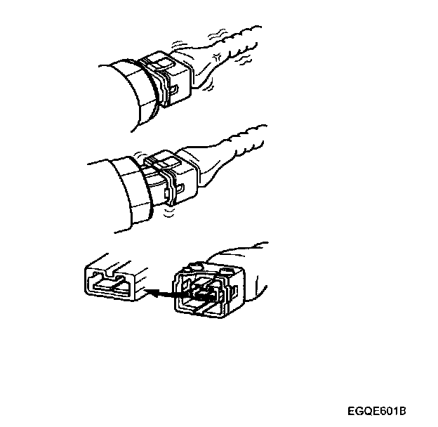 Lightly shake the connector and wiring harness vertically and then horizontally.