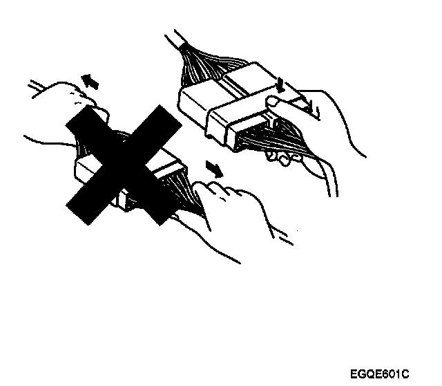 3. Slightly shake the connector and wiring harness vertically and horizontally.