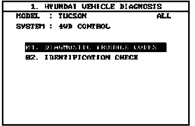 4. Select option "01. DIAGNOSTIC TROUBLE CODES" and press ENTER.