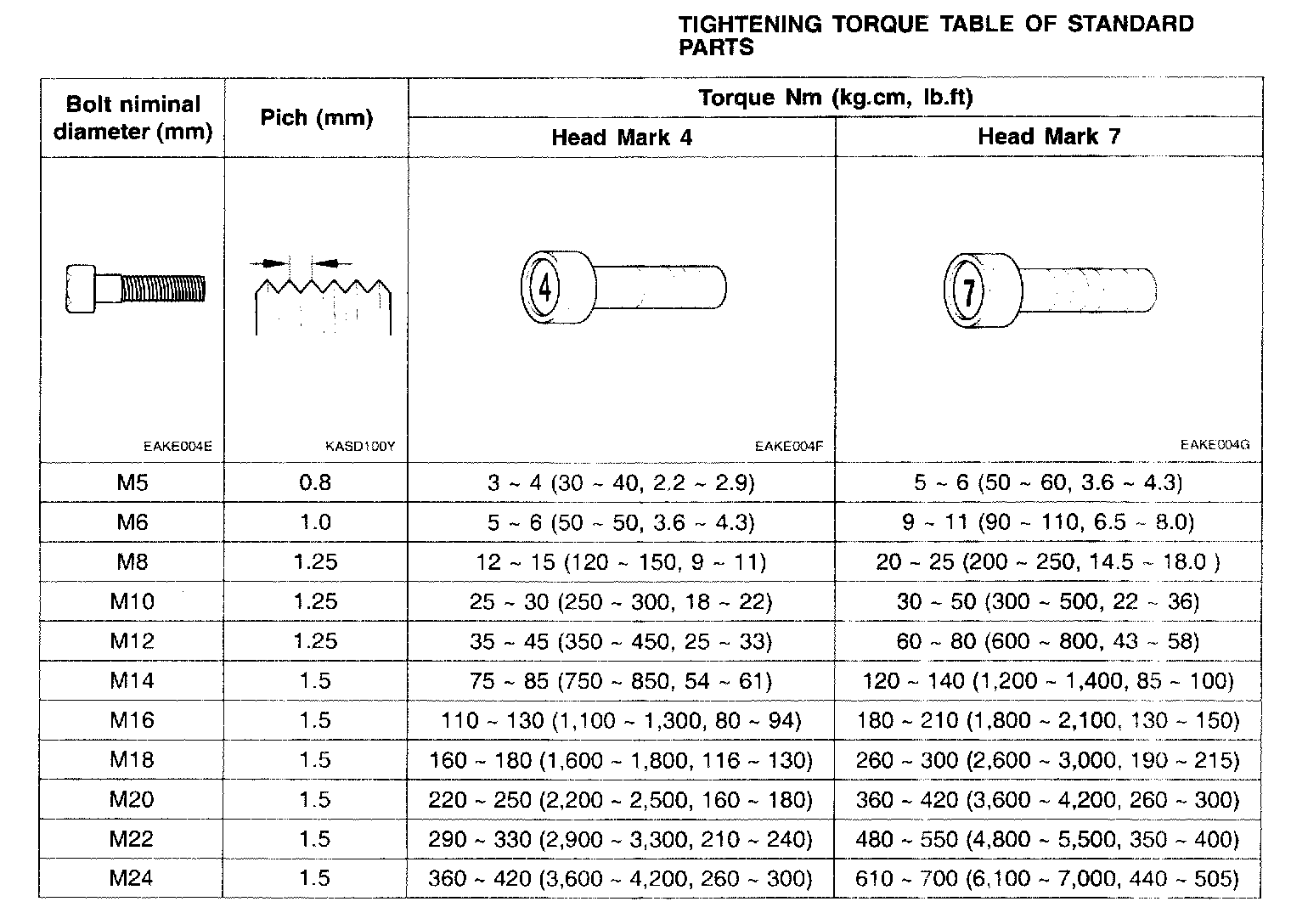 TIGHTENING TORQUE TABLE OF STANDARD PARTS