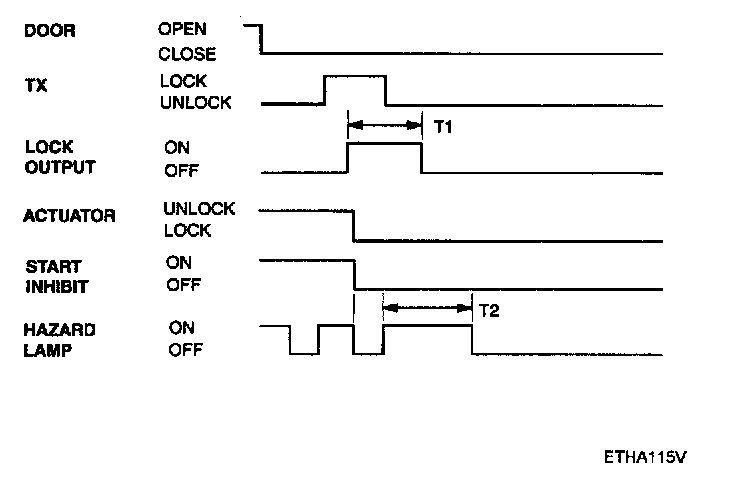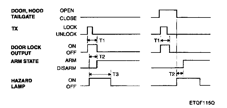 If transmitter(TX) lock signal is received when a door, tailgate or hood is open,then lock output is given and a flash of hazard is not given.