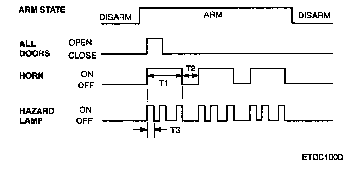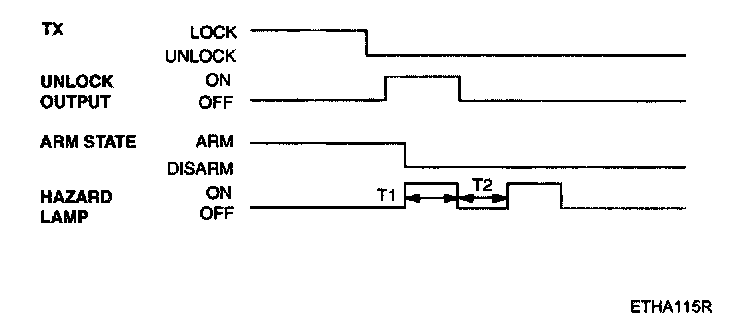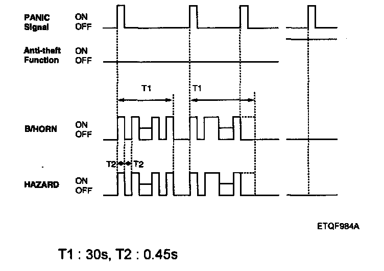 1. If the transmitter's PANIC alarm signal is detected, during T1, using the burglar alarm horn or HAZARD, the PANIC alarm is ON.