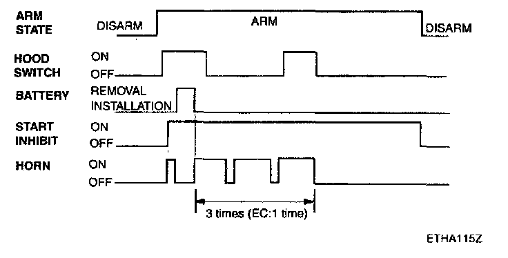 2. During the PANIC alarm is ON, in the case of "PANIC, TX LOCK/UNLOCK, KEY IN, DR/AS KEY UNLOCK SW OFF->ON, DR/AS KEY LOCK SW OFF->ON, RELOCK, T/GATE KEY UNLOCK SW OFF->ON", the PANIC alarm is OFF.