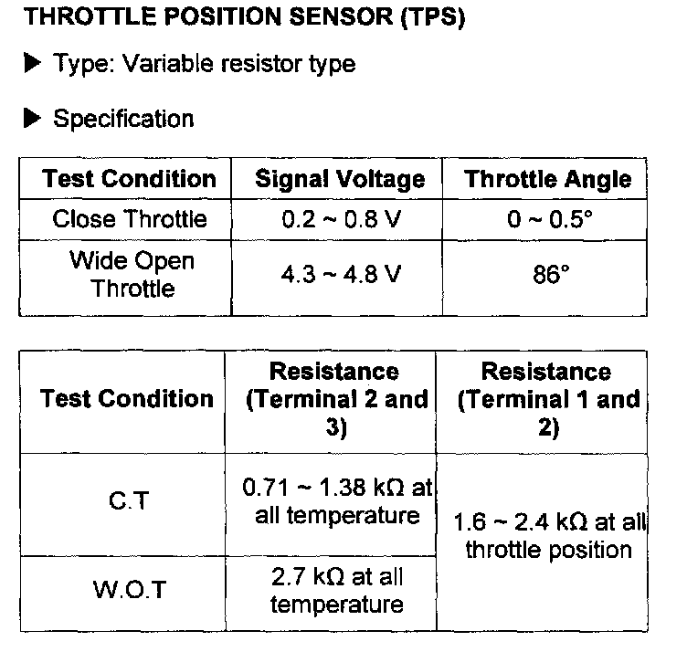 Throttle Position Sensor: Specifications