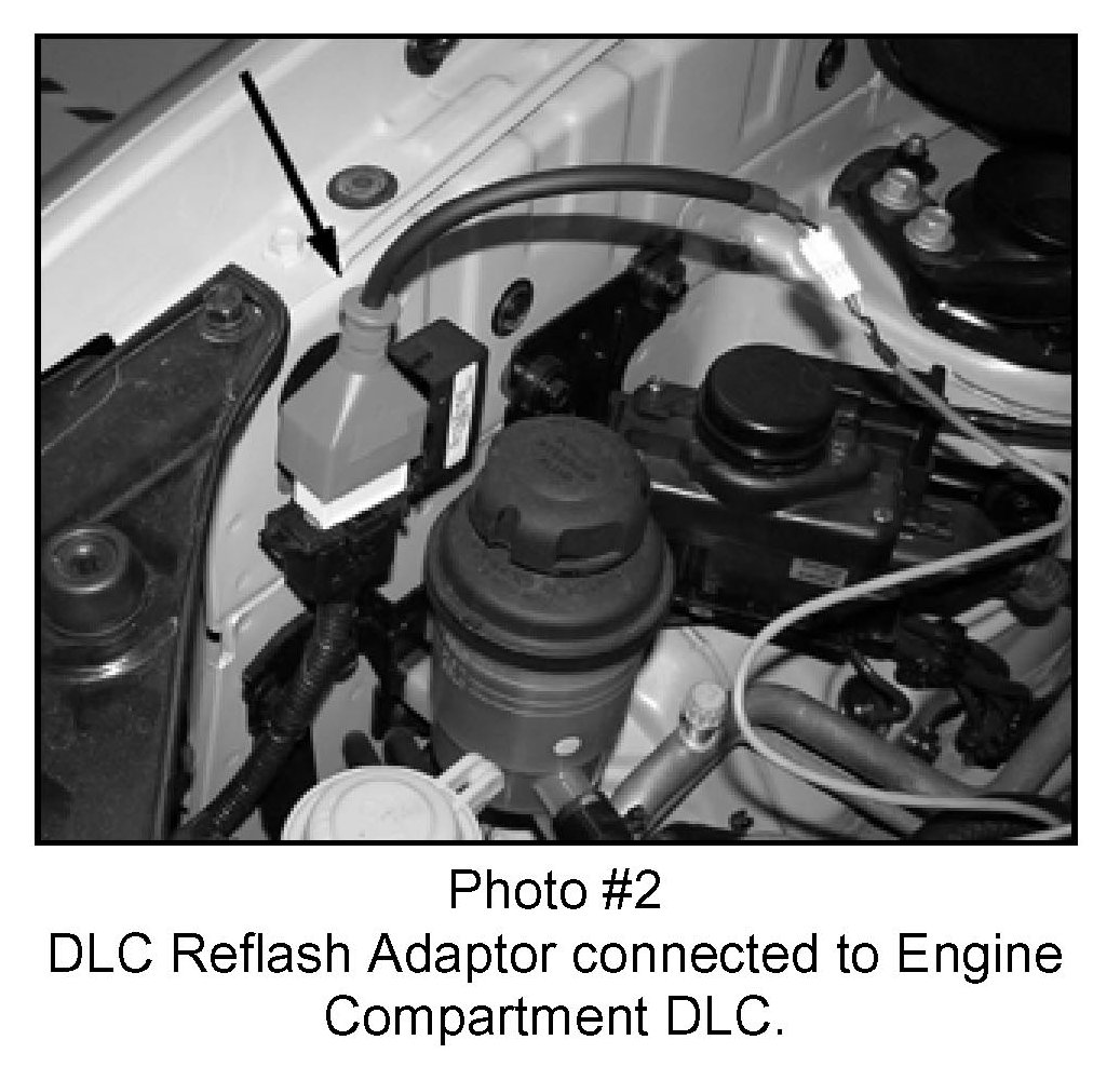 2. Connect the DLC reflash adaptor to the engine compartment DLC (photo # 2).