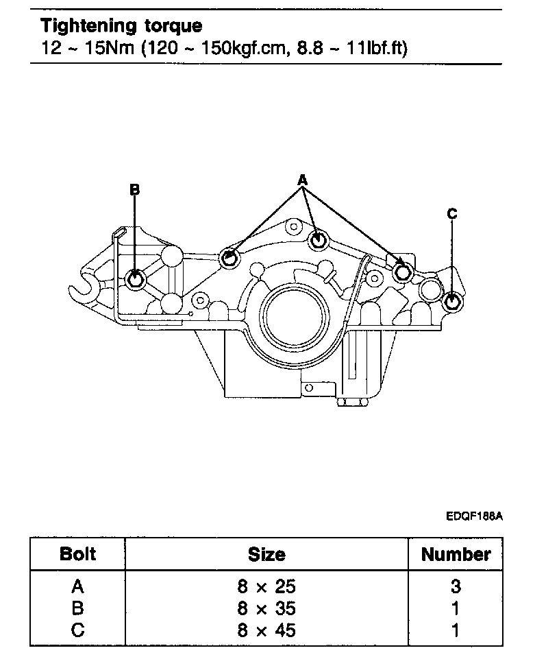 Install the oil pump with 5 bolts.