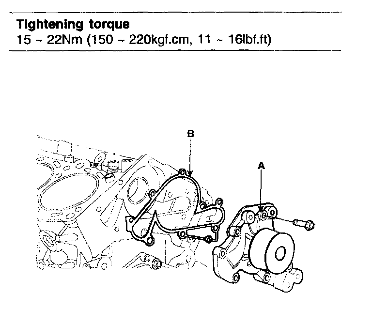 Tightening torque 15 - 22 Nm (150 - 220 kgf-cm, 11 - 16 ft. lbs.)