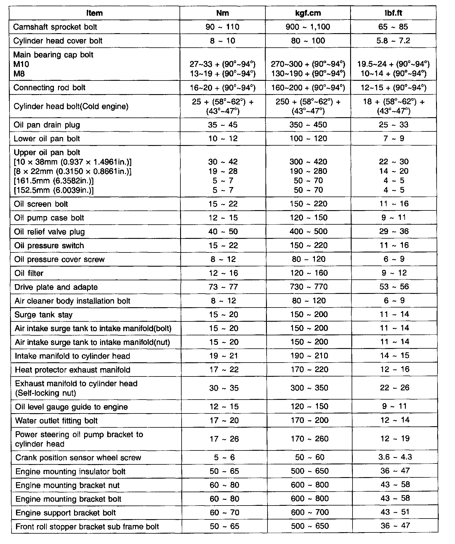 Exhaust Manifold Tightening torque 30 - 35 Nm (300 - 350 kgf-cm, 22 - 26 ft. lbs.)