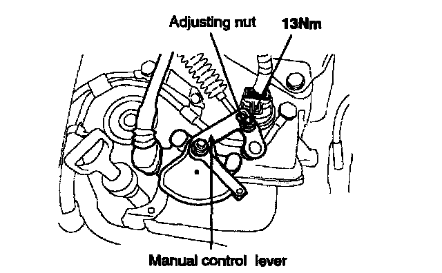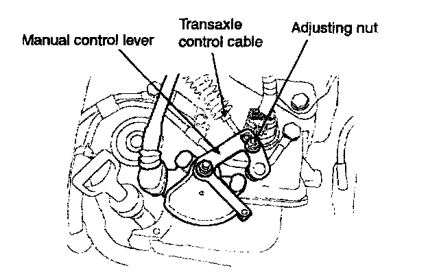 2. Loosen the control cable to manual control lever coupling nut to free the cable and lever.