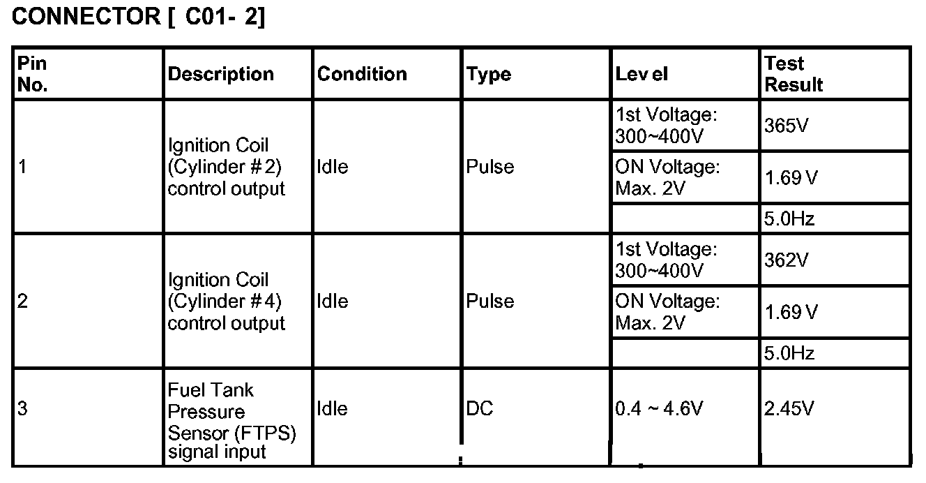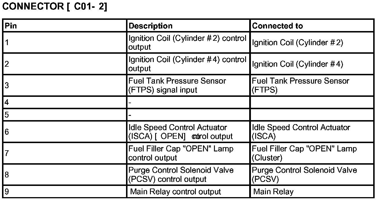 PCM Harness Connector (A/T) C01-1 And C01-2: