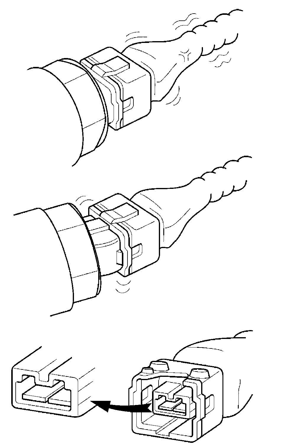 3. Slightly shake the connector and wiring harness vertically and horizontally.