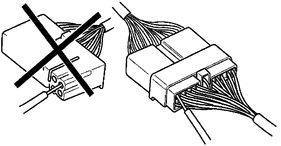 - When a tester is used to check for continuity, or to measure voltage, always insert tester probe from wire harness side.