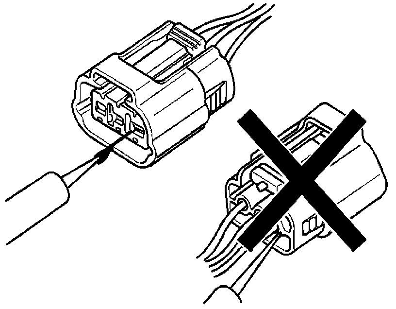 - Check waterproof connector terminals from the connector side. Waterproof connectors cannot be accessed from harness side.
