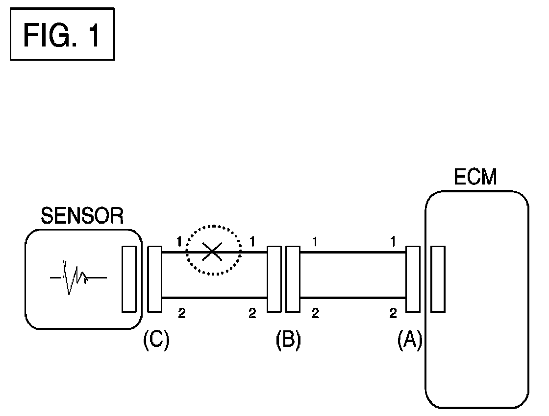 If an open circuit occurs (as seen in [FIG. 1]), it can be found by performing Step 2 (Continuity Check Method) or Step 3 (Voltage Check Method).