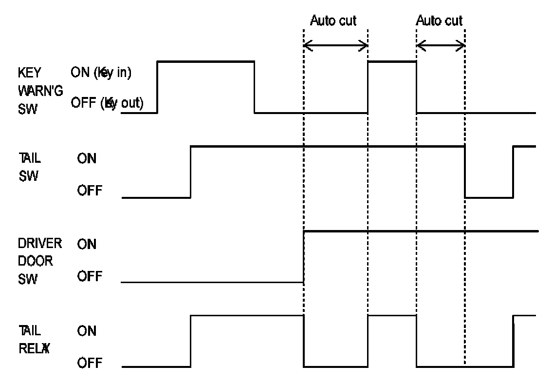 d. When the tail lamp is cut automatically and the ignition key is inserted, the tail lamp illuminates and auto cut function is canceled.