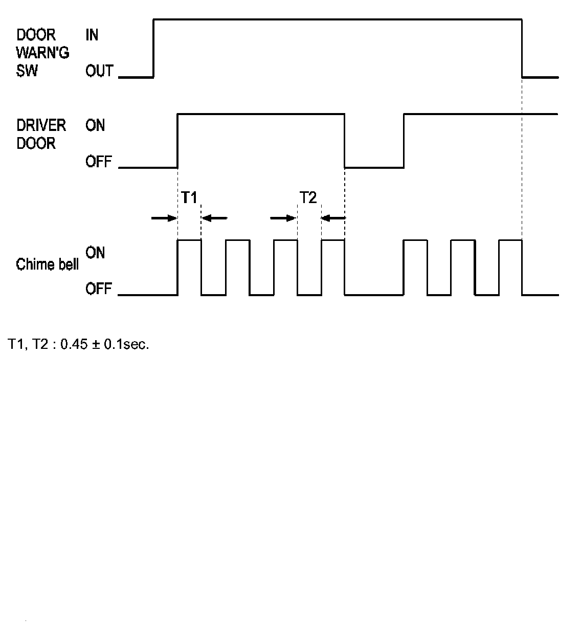 a. If the key is in the key cylinder and the Driver door is opened, the chime bell is sounded (period: 0.9 sec., duty rate: 50%).