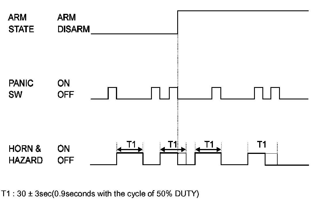 - During the Anti theft alarm sequence, even if the TX Panic signal is received, the Anti theft alarm shall be maintained. (The Panic signal shall be ignored.)
