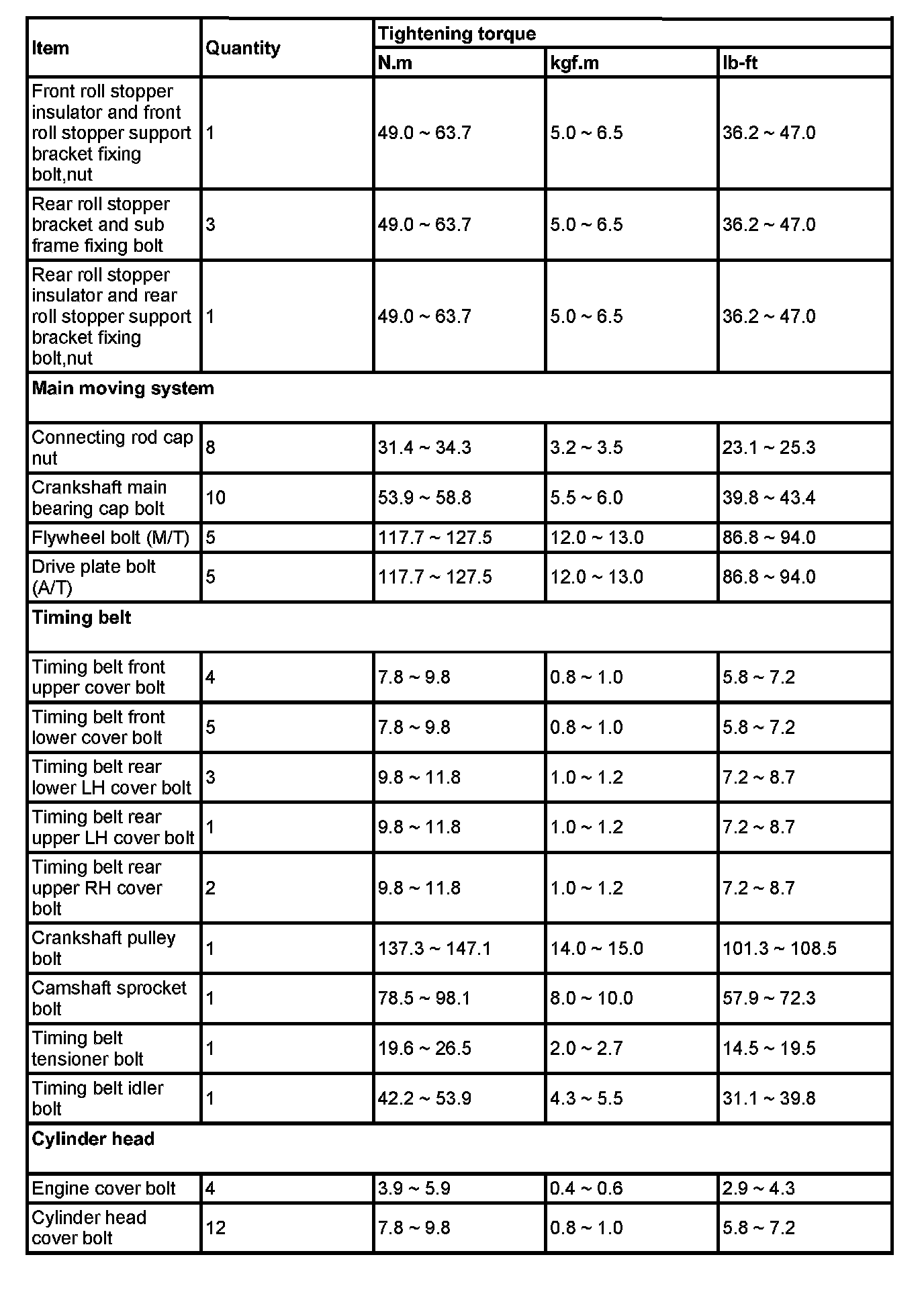 TIGHTENING TORQUE
