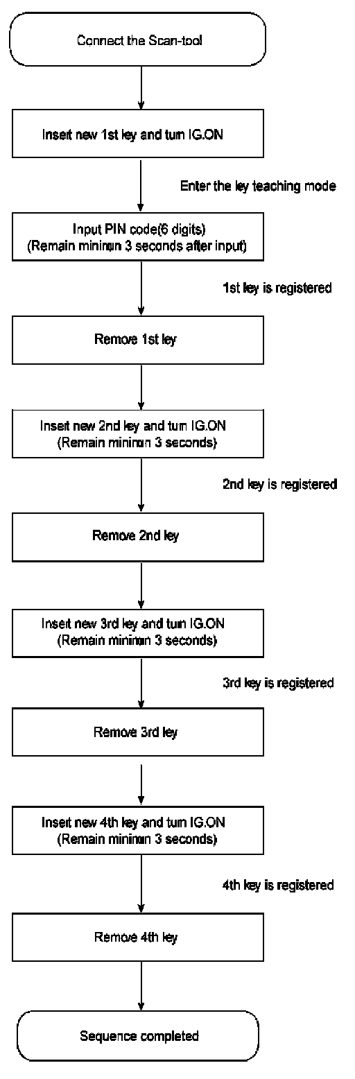 If the PCM(ECM) status and the key status do not match for teaching of keys, the tester procedure will be stopped and a specific fault code will be stored at PCM(ECM).