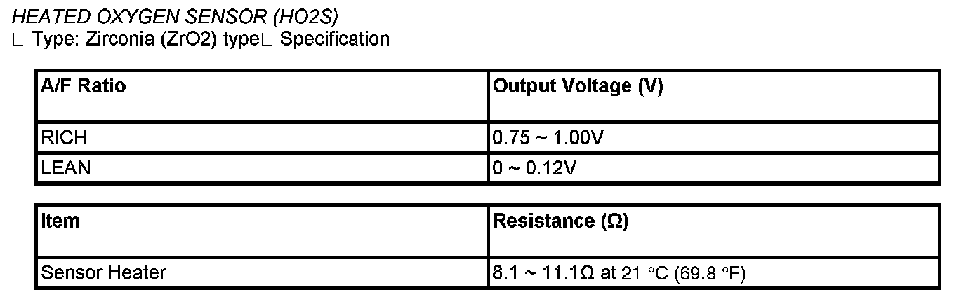 Heated Oxygen Sensor (HO2S) - Specification: