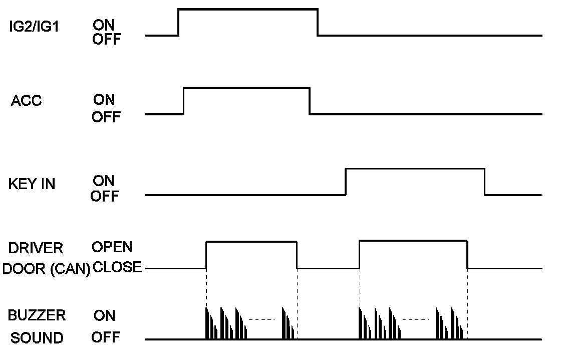 A. While IGN KEY is inserted into the key cylinder or ACC is on or IGN2 is on or IGN1 is on, if driver side door is opened. Key operated warning starts.