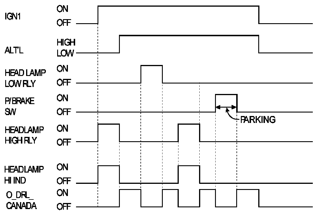 This Daytime Running Light option is selected by the DRL option line input connected to ground, then there are 2 cases :