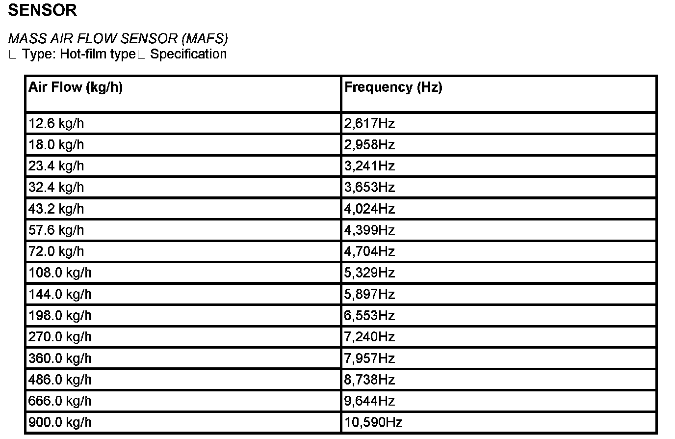 Mass Air Flow Sensor (MAFS) - Specification: