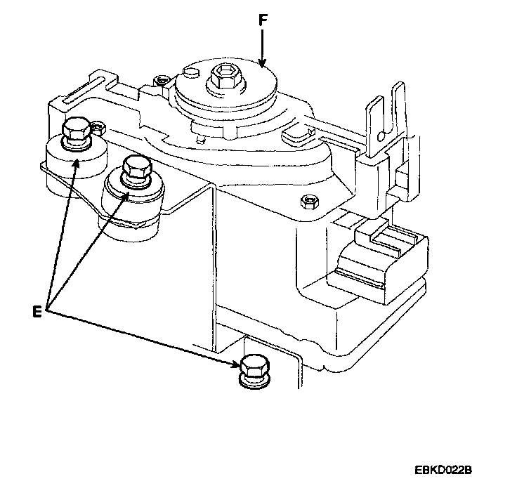 3. Loosen the three mounting bolts (E), and remove the cruise control unit with the bracket (F).