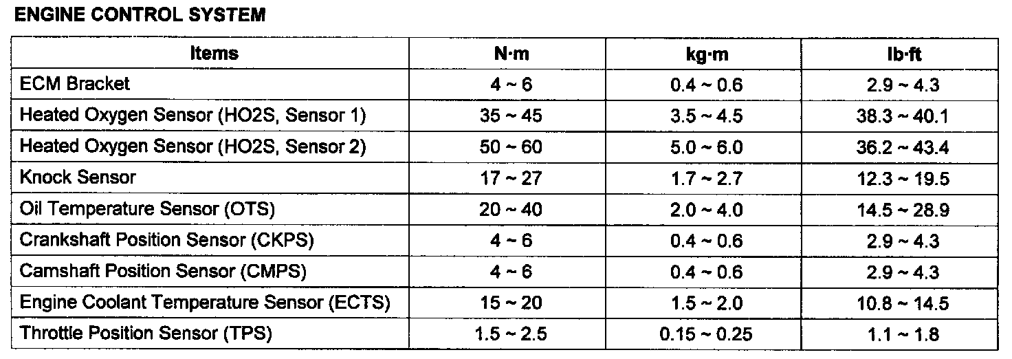 Tightening Torques:
