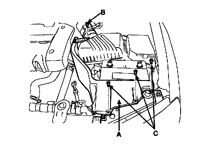 2. Remove the heat shield (A) (Bolt: 1 EA (B), Retainer: 3EA (c).