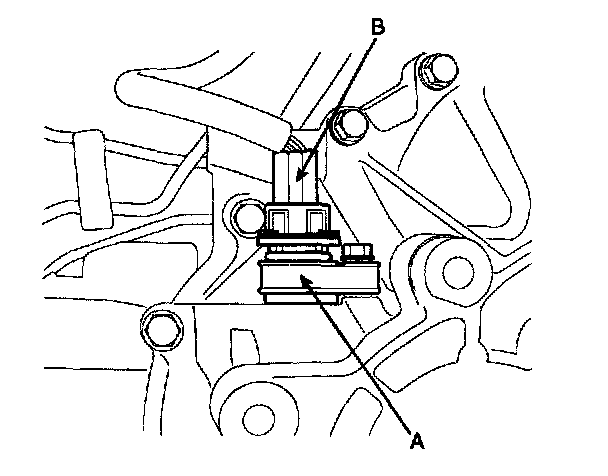 1. Disconnect the vehicle speed sensor connector (B).