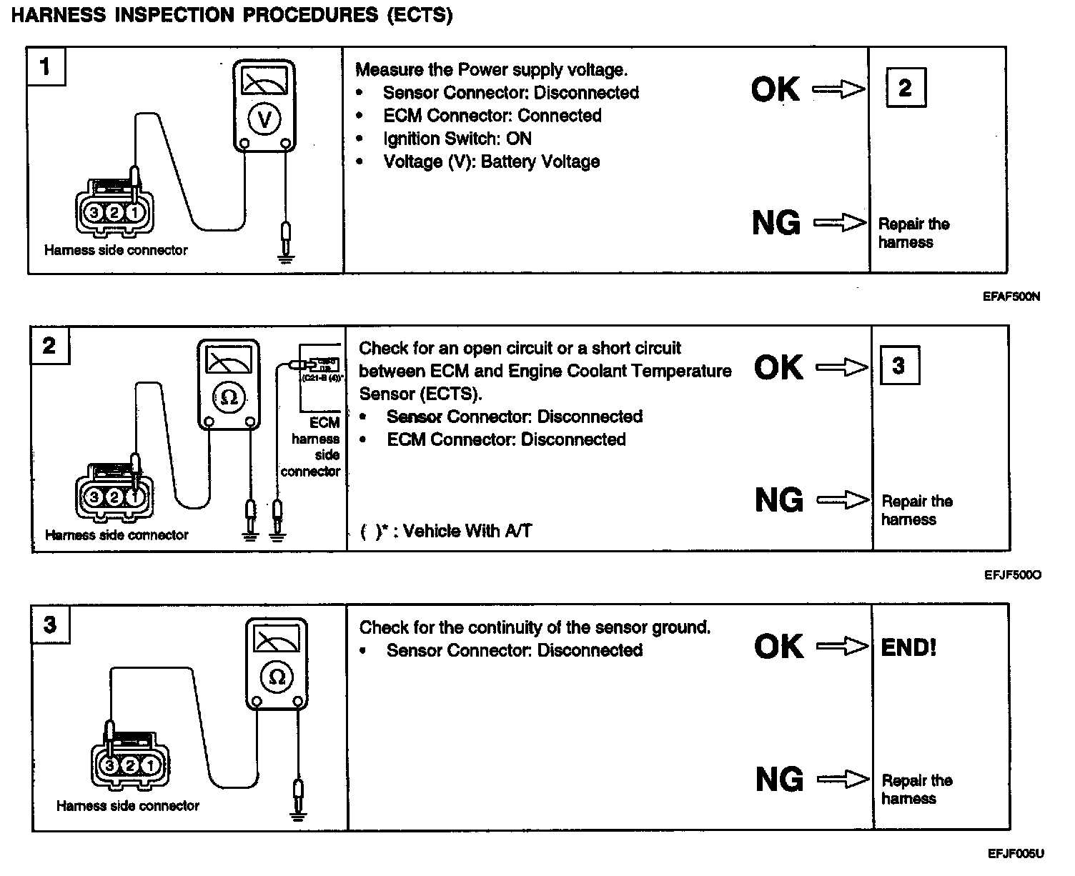 If the fast idle speed is not adequate or the engine gives off dark smoke during warm-up the ECTS might be the cause.