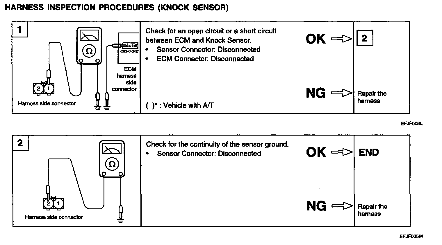 HARNESS INSPECTION PROCEDURES (KNOCK SENSOR)