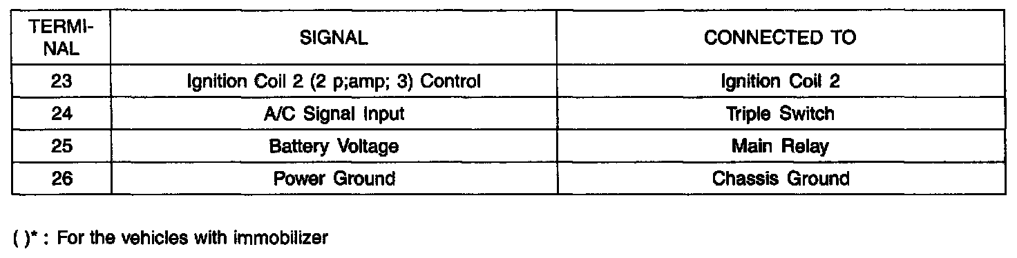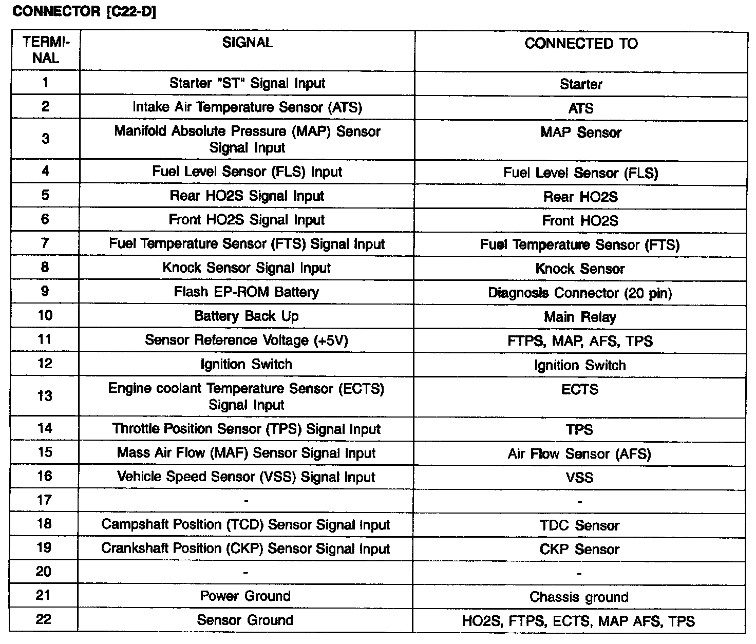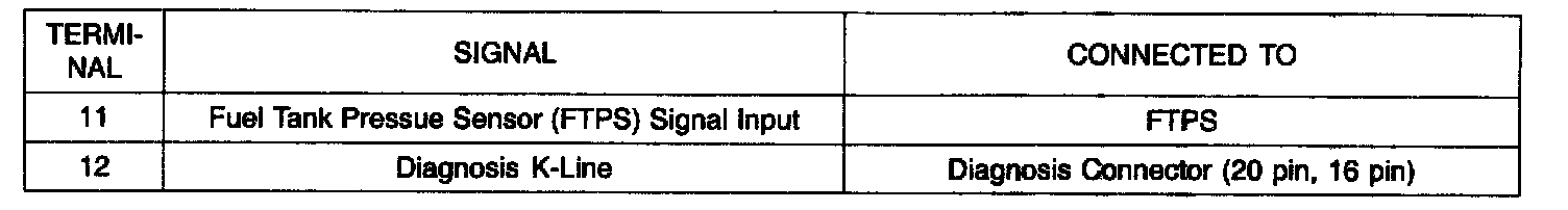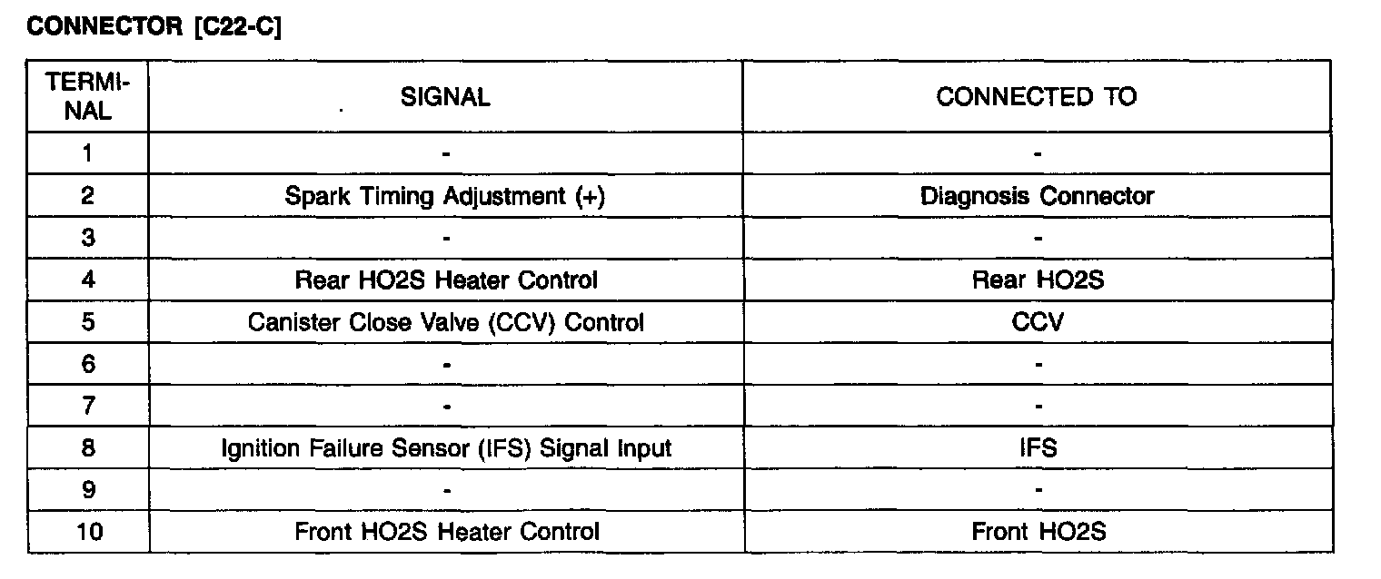 ECU Terminal Layout Without TCU: