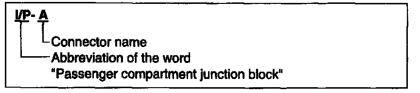 A junction block identification symbol consists of a wiring harness location classification symbol corresponding to a wiring harness location and number corresponding to the connector in the junction block.
