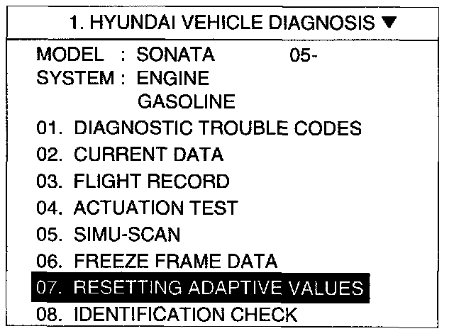 7. Check a fault code(DTC) on Hi-Scan(Pro) if the TPS adaptation was successful.