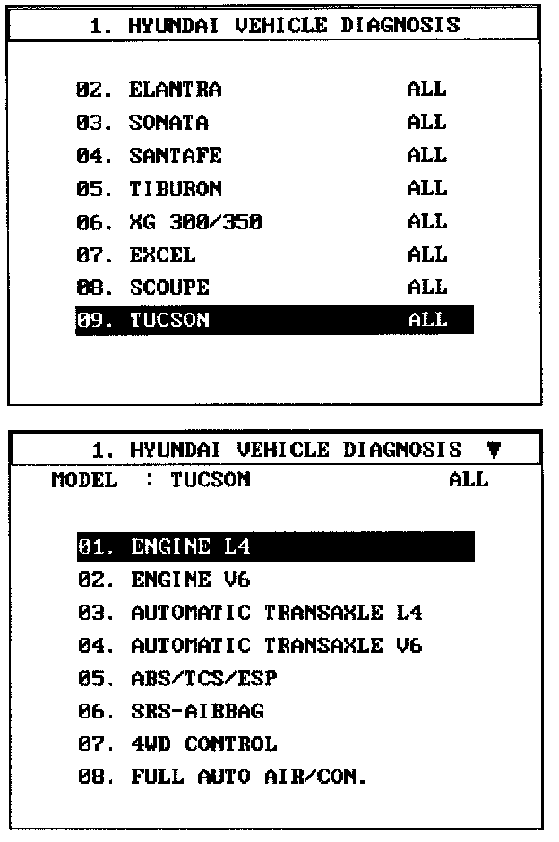 1. Select "Vehicle" and "Engine" (For example, TUCSON 2.0L L4).