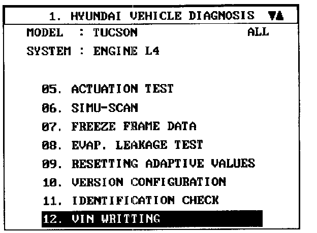 2. Select "VIN WRITING".
