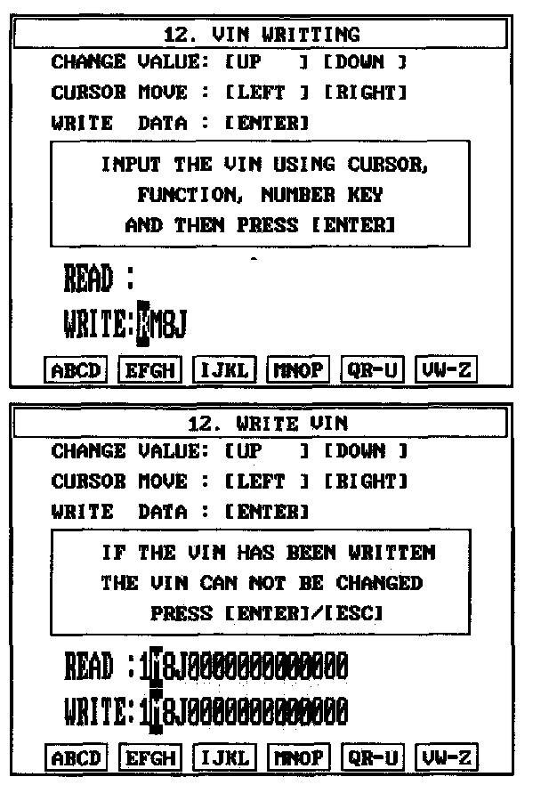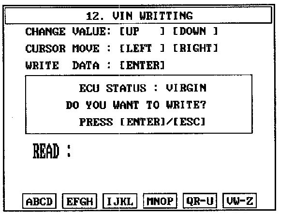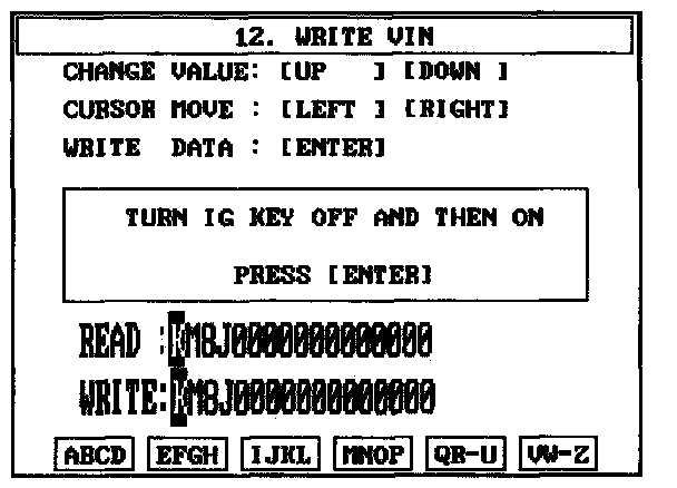 4. Write the VIN with cursor, function and number keys.