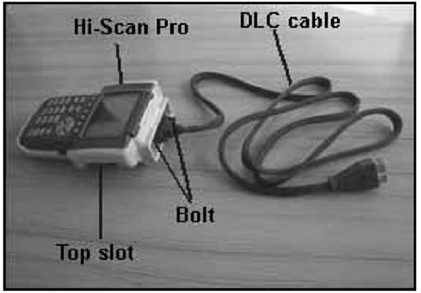 1. Attach the Data Link Connector (DLC) cable to the Hi-Scan Pro main body and securely tighten the two bolts.