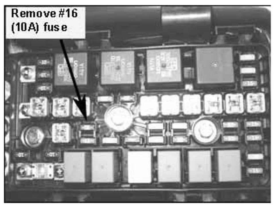 2. Pull out the ECU fuse # 16 (10A) from the engine room relay box for 15 seconds and then reinstall it.