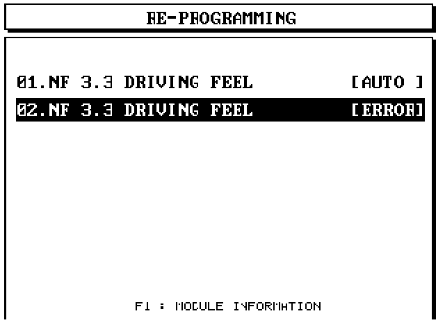 6. Select option "02. NF 3.3 DRIVING FEEL [ERROR]" and press ENTER.