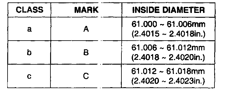 Cylinder bore 82.00 - 82.03 mm (3.2283 - 3.2295 inch)