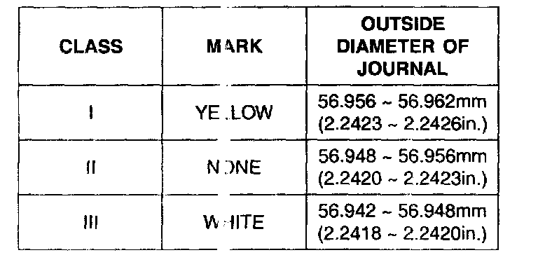 Undersize rework dimension of journal 0.25 mm (0.010 inch) 56.727 - 56.742 mm (2.2333 - 2.2339 inch)