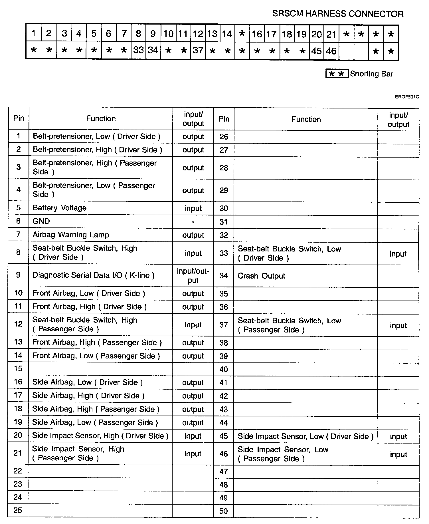 SRSCM Harness Connector Pin 1 - 50: