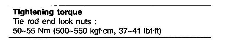 - Toe-in adjustment should be made by turning the right and left tie rods at the same amount.