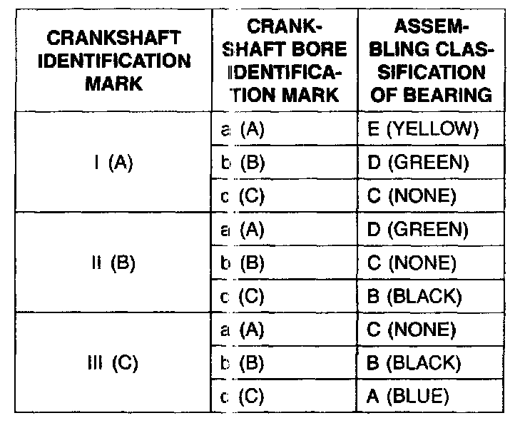 Main bearing clearance 0.004 - 0.022 mm (0.0002 - 0.0009 inch) 0.1 mm (0.004 inch)