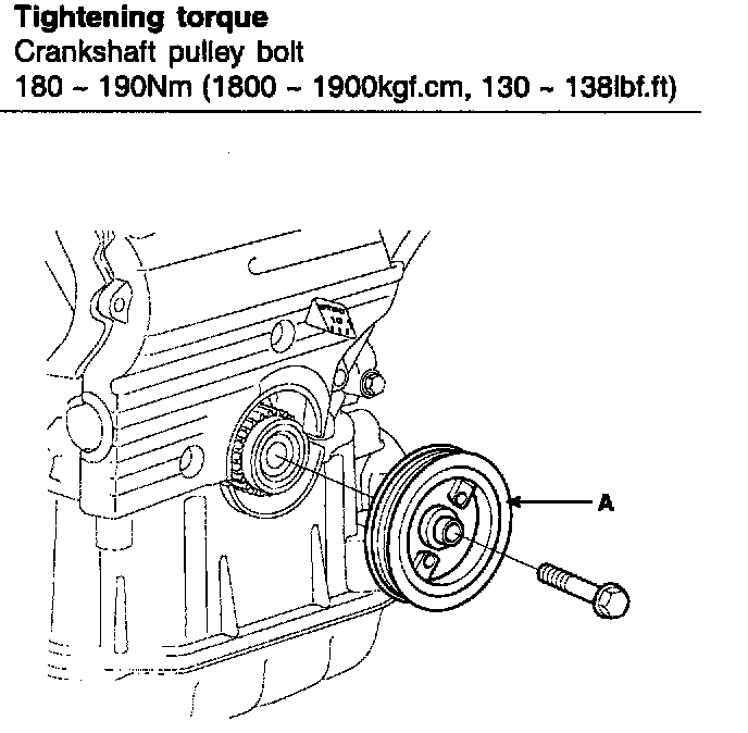Crankshaft pulley bolt 180 - 190 Nm (1800 - 1900 kgf-cm, 130 - 138 ft. lbs.)