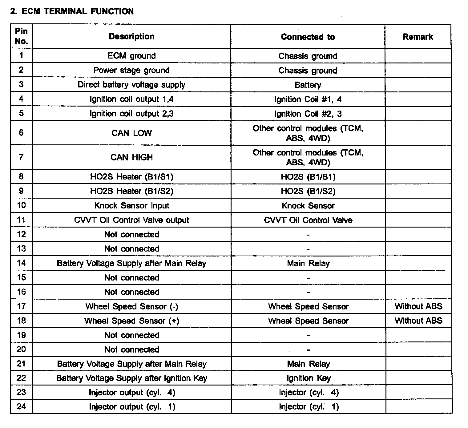 ECM Terminal Input/Output Signal Part 2: