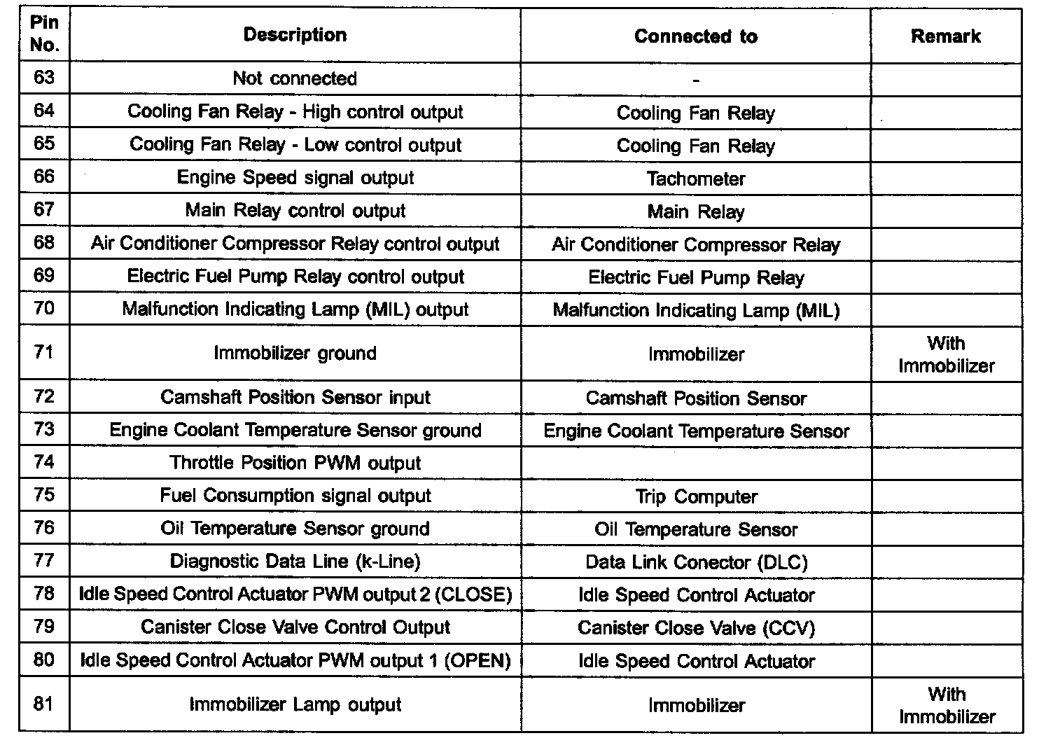 ECM Terminal Input/Output Signal Part 1: